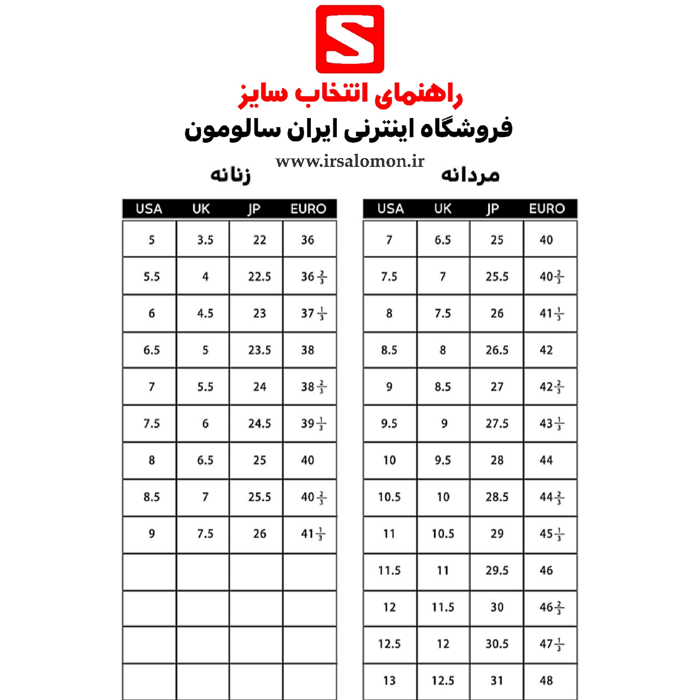 اندازهگیری دقیق پای خود را انجام داده و با جدول استاندارد سالومون مقایسه نمایید. سایز این برند ممکن است با سایز کفشهای معمولی شما متفاوت باشد.