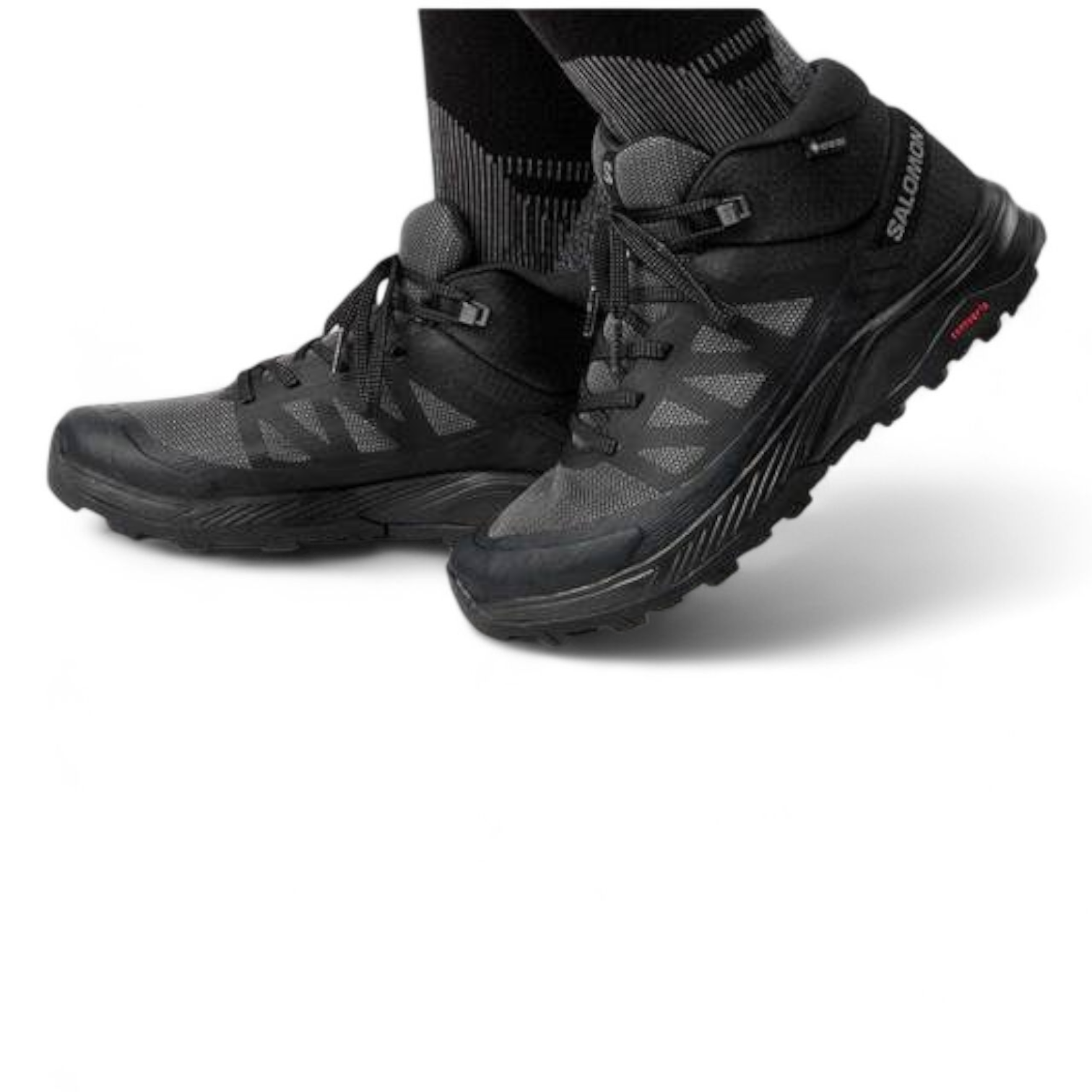 کفش OUTRISE MID GTX سالومون، پلی استوار بین دنیای شهری و ماجراجوییهای طبیعت است. این نیمبوت همهفصل، با طراحی قد متوسط (Mid-Cut) و فناوری پیشرفته، برای مردانی طراحی شده که سبک زندگی پویا دارند و به دنبال کفشی هستند که هم در خیابانهای شهر ظاهری قدرتمند و مدرن داشته باشد و هم در مسیرهای خاکی، عملکردی قابل اعتماد از خود نشان دهد. ترکیبی از دوام بیکموکاست، راحتی تماموقت و عملکردی مطمئن.