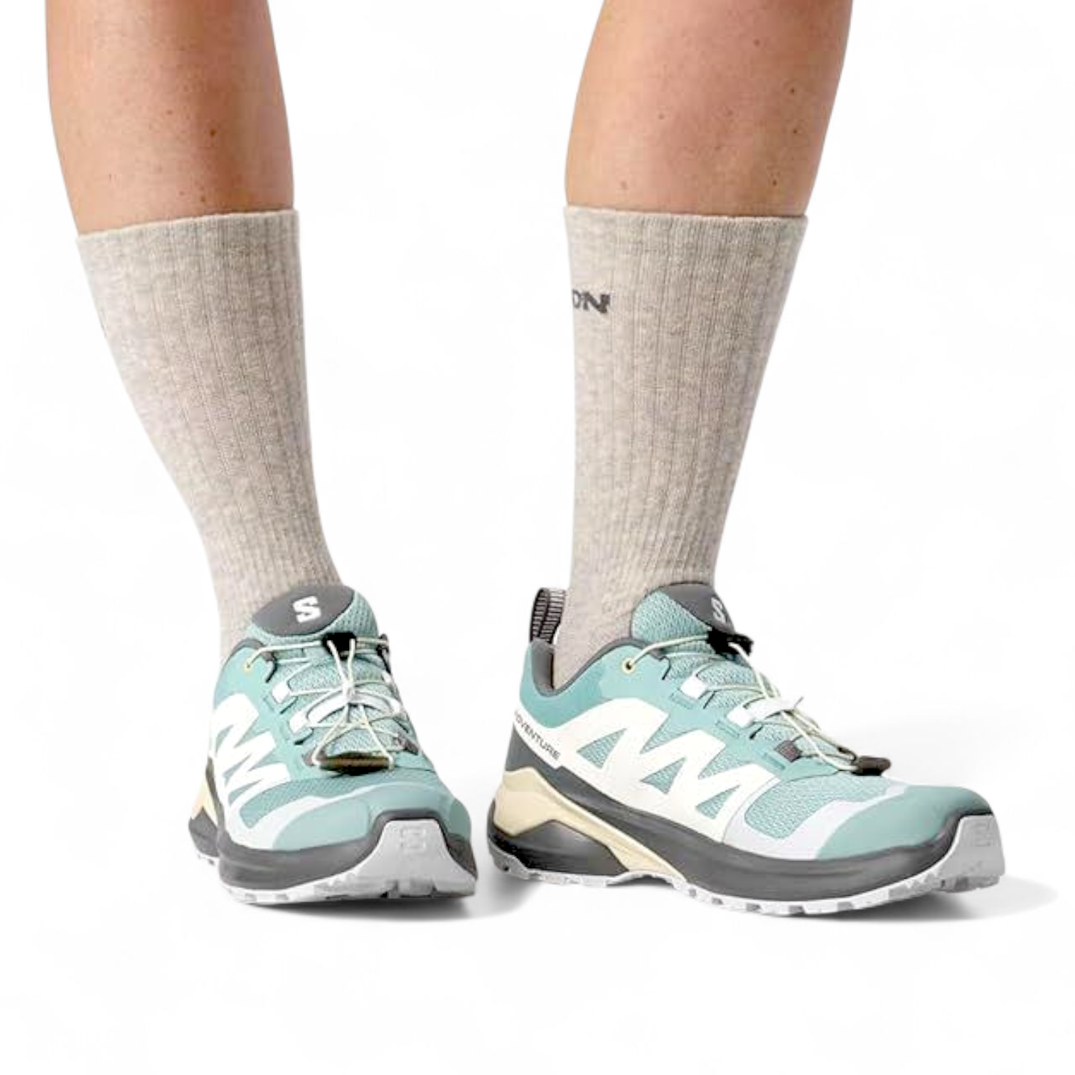 کفش X ADVENTURE W سالومون، تجسم سبکی، راحتی و روحیه ماجراجویانه در قالب یک کفش اسپرت زنانه مدرن است. این مدل با الهام از DNA فعالیتهای فضای باز سالومون، تمامنگاهی شهری و کاربردی دارد و برای بانوانی طراحی شده که به دنبال همراهی هوشمند، خوشاستایل و فوقالعاده راحت برای کشف گوشهوکنار شهر یا گریزهای کوتاه به دل طبیعت هستند.